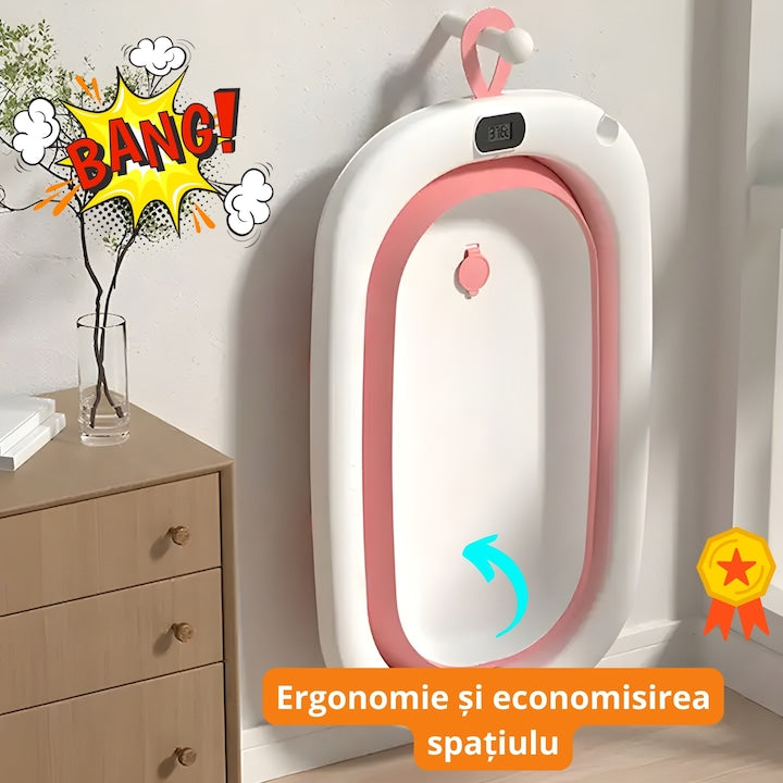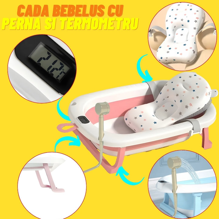 - Comandă acum cădița de baie pliabilă cu suport și termometru și transformă fiecare băiță într-un moment special de conectare cu bebelușul tău!