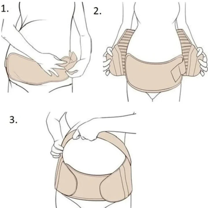 Fixare abdominală – Poziționați centura sub burtică și ajustați nivelul de susținere cu ajutorul velcro-ului.