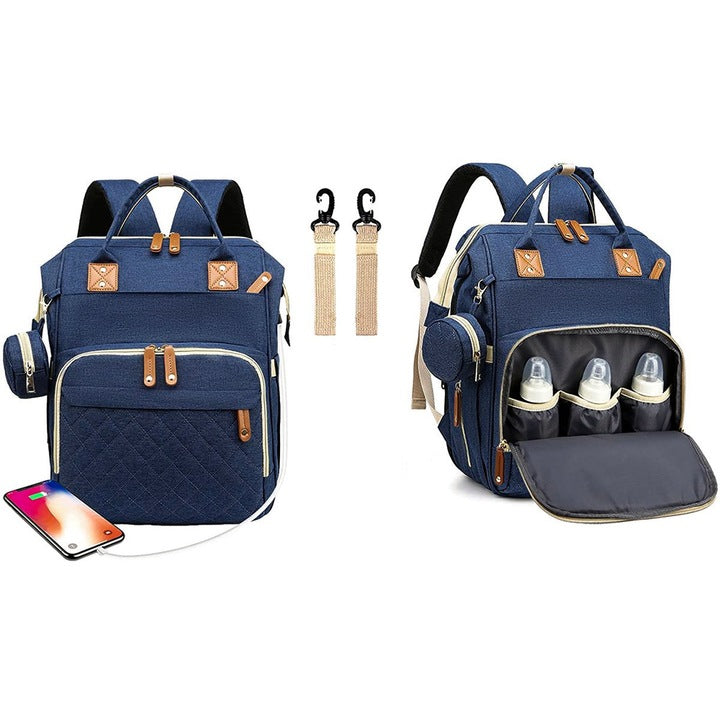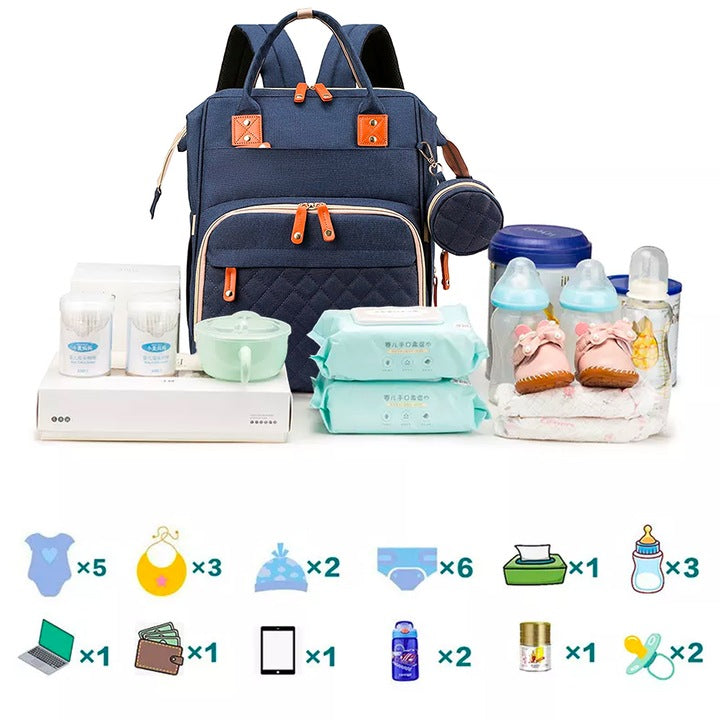 Rucsacul dispune de numeroase buzunare interioare și exterioare, perfecte pentru biberoane, scutece, haine, suzete, telefon, portofel, tabletă sau alte obiecte esențiale. Compartimentarea inteligentă ajută la menținerea lucrurilor ordonate și ușor accesibile.