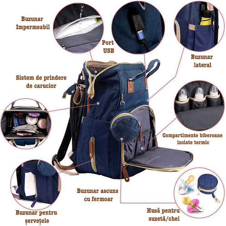 🎒 Rucsac Multifuncțional pentru Bebeluși – Organizare Practică și Stil Modern