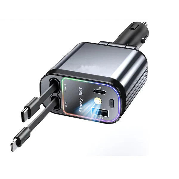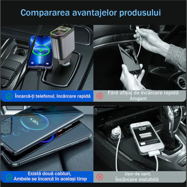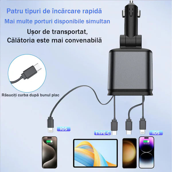 🚀 Încărcător Auto Retractabil 4-in-1 – performanță, siguranță și eleganță la fiecare drum.