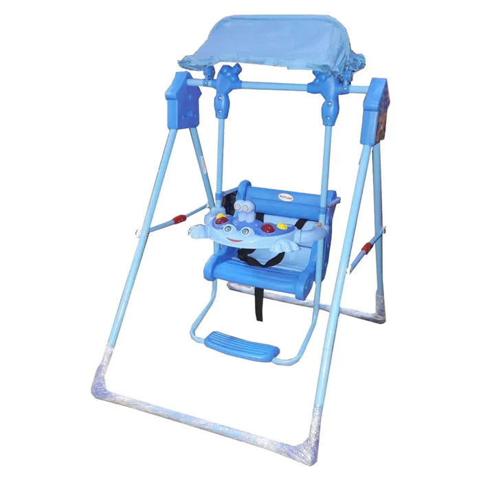 Leagan Bebelusi si Copii pentru interior si exterior , Cu melodii si lumini, Suport picioare, Centura de siguranta, Broscuta, Albastru