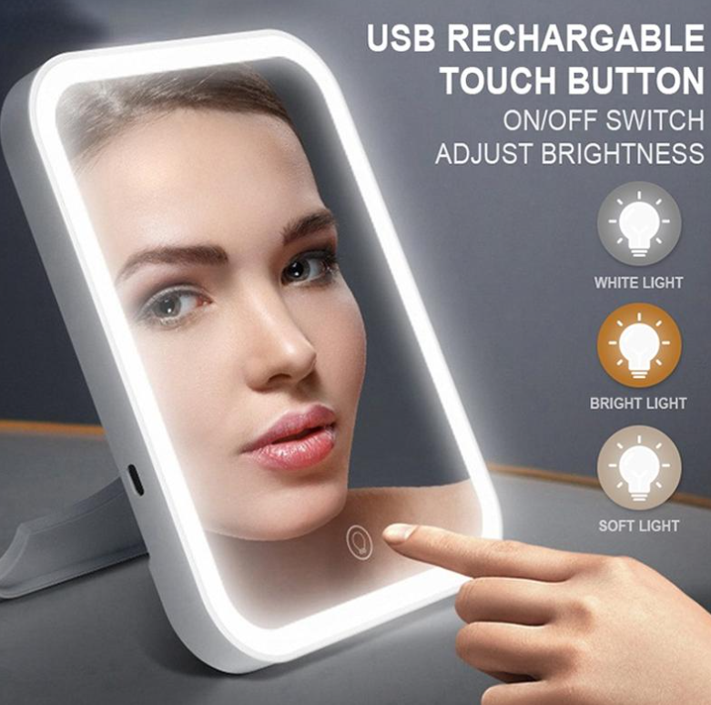 Oglinda de machiaj cu LED, ecran tactil, 3 tipuri de lumina, portabila, suport pliabil