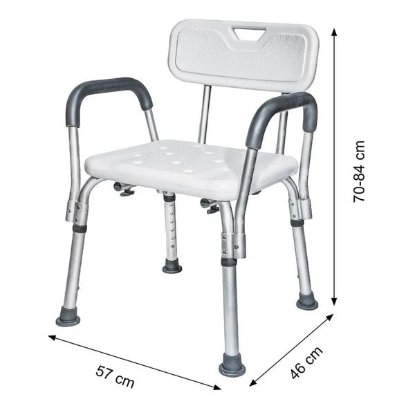 Scaun pentru baie, cu suport brate, ajustabil, alb