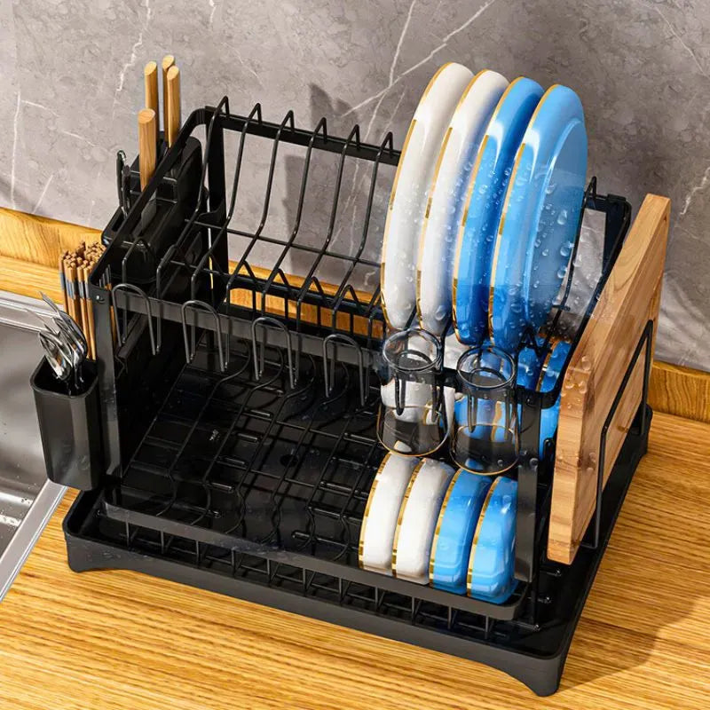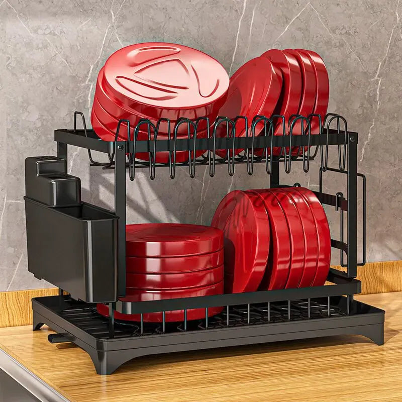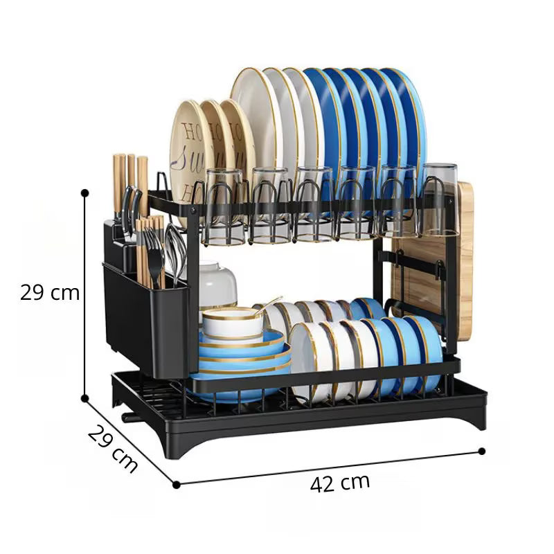 Cu scurgatorul de vase cu suport pentru tacamuri si pahare, adio dezordine in bucatarie si bun venit organizare impecabila - pentru ca fiecare farfurie merita locul ei!