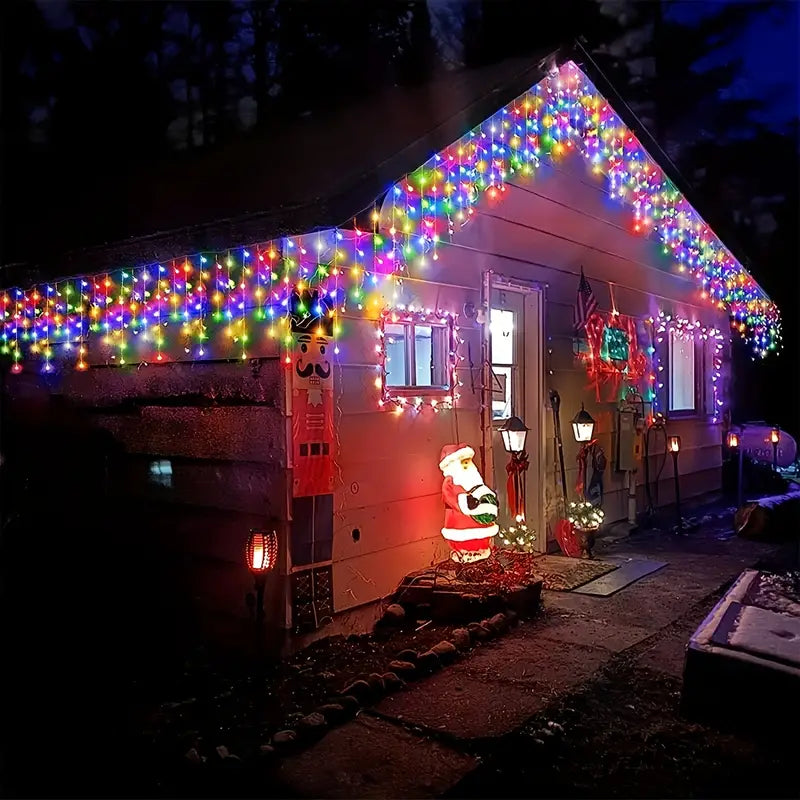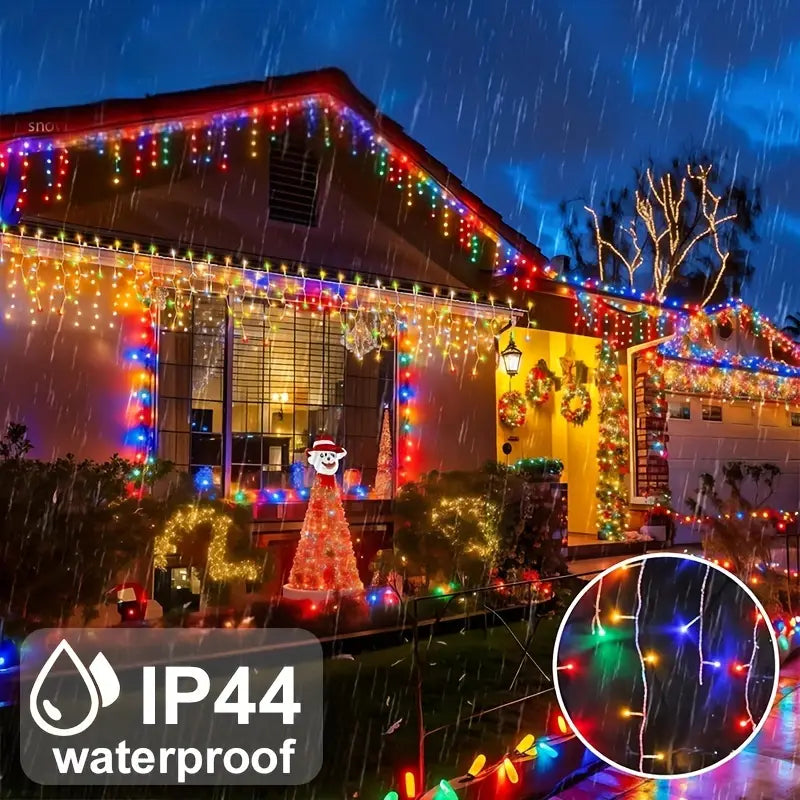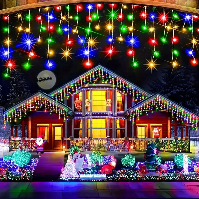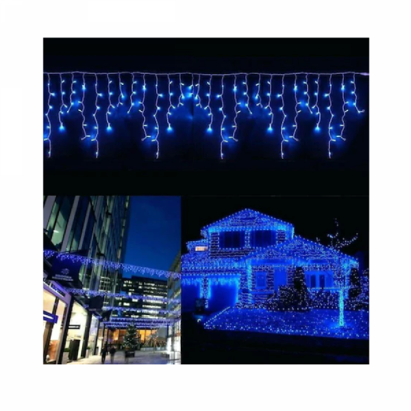 Instalatie Craciun 12 metri franjuri cu LED-uri la alegere albastre sau multicolore.Instalatiile sunt tip perdea luminoasa cu franjuri inegali .