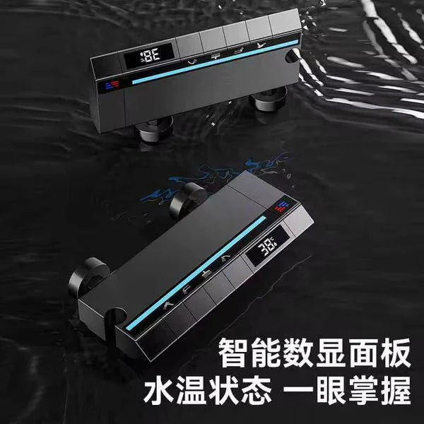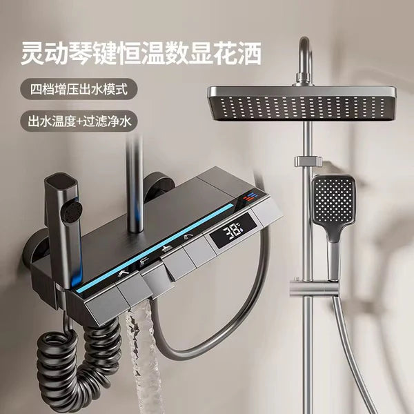 Set de dus cu robinet termostatic, display digital LED, 3 functii, inox, argintiu