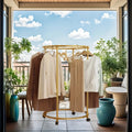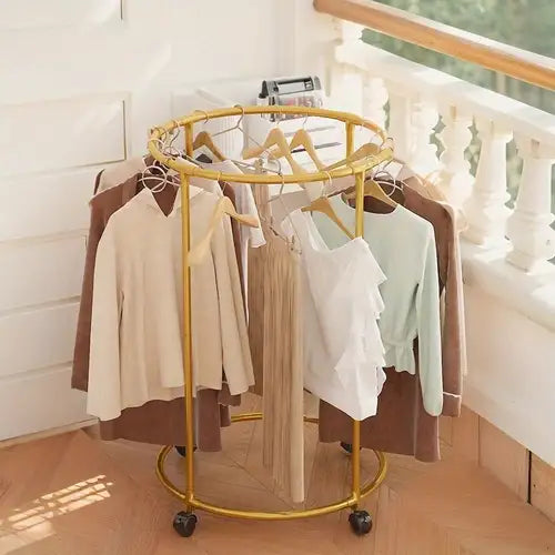 Suport rotund cu diametru generos – oferă spațiu amplu pentru haine pe umerașe.